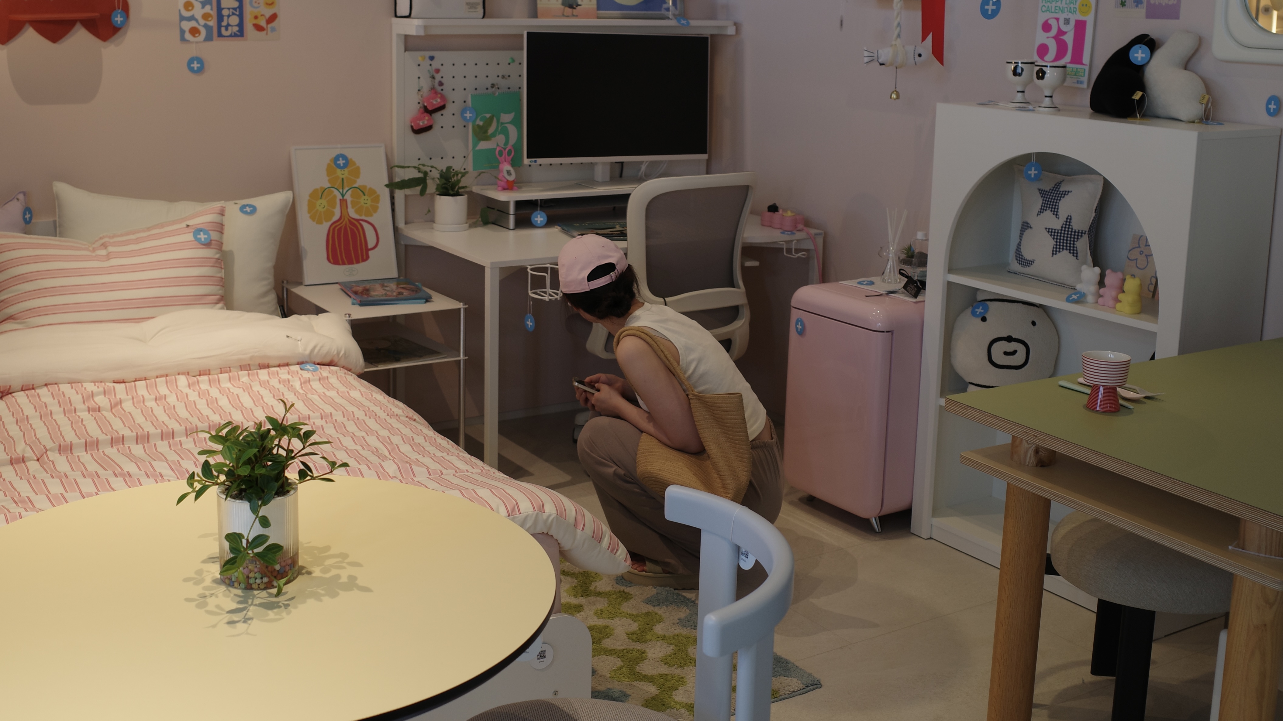이곳은 오늘의집 플랫폼 안에서 가장 많은 '좋아요'를 받은 인기 유저 6인의 실제 공간을, 취향을 담아 구성했습니다.크리에이터 각각의 방은 파티션으로 나뉘어 있으며, 관람객은 칸막이를 하나씩 넘으며 마치 여러 집을 순회하는 듯한 경험을 하게 됩니다. 여기서 주목할 지점은 단순히 인기가 많았던 예쁜 공간을 모아놓았다는 점이 아닙니다! 오늘의집이라는 플랫폼의 핵심 콘텐츠였던 UGC(사용자 생성 콘텐츠)가 실제 공간을 구성하는 요소로 사용했다는 점입니다.