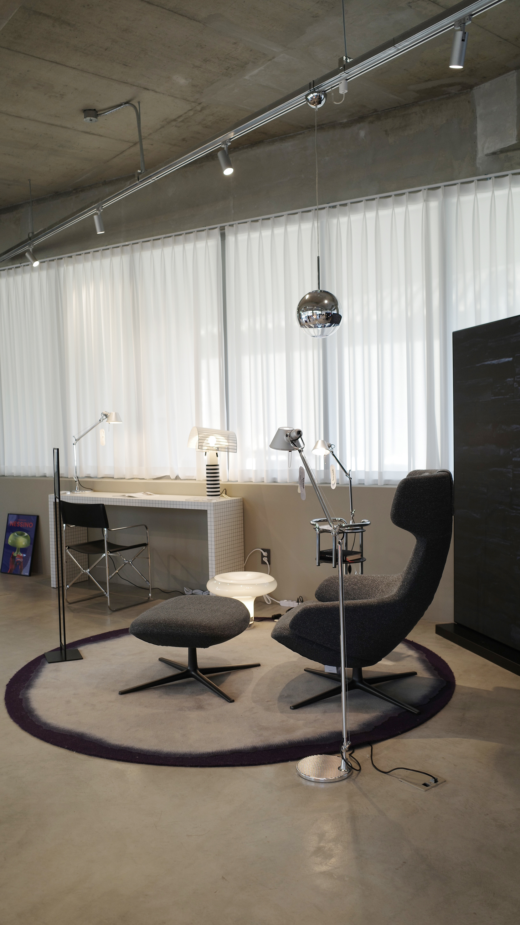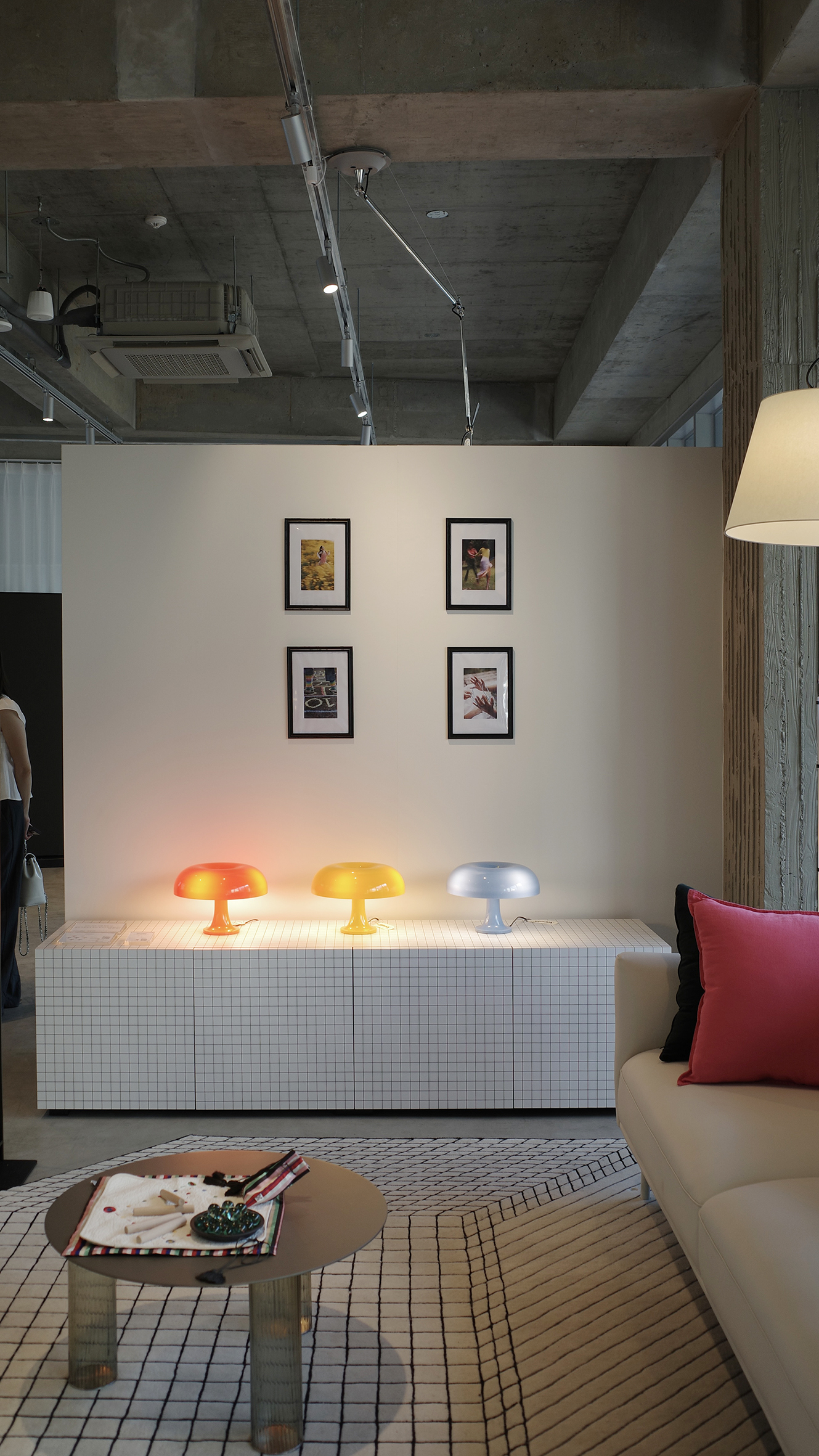 1층 커넥트 라운지는 브랜드 협업 콘텐츠의 무대로 구성되어 있으며, 첫 파트너는 글로벌 조명 브랜드 '아르떼미데'였습니다. 현재는, 넷플릭스 드라마 ‘오징어게임’과 협업한 전시를 통해, 단순한 전시를 넘은 ‘문화 콘텐츠’로 확장된 브랜딩을 보여주고 있어요. |