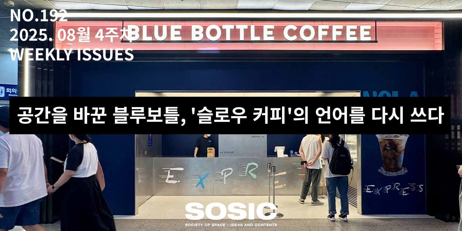 흥미로운 지점은 공간 경험에 대한 두는 비중이 크게 바뀌었다는 것 입니다! 블루보틀 매장은 지금까지 특정 목적지를 향해 찾아가는 ‘성지’에 가까웠습니다. 그러나 서울역 익스프레스 매장은 누구나 지나가다 쉽게 들릴 수 있는, 흐름 속의 공간으로 설계되었습니다. 머무는 공간에서 흘러가는 공간으로의 전환은 커피 브랜드를 넘어 도시 리테일 전반이 겪고 있는 변화일지도 모릅니다. 도심 속 체류형 공간과 이동형 공간의 경계가 점점 흐려지는 지금, 블루보틀의 시도는 도시 경험의 패러다임을 읽는 하나의 사례인 듯 하죠. |