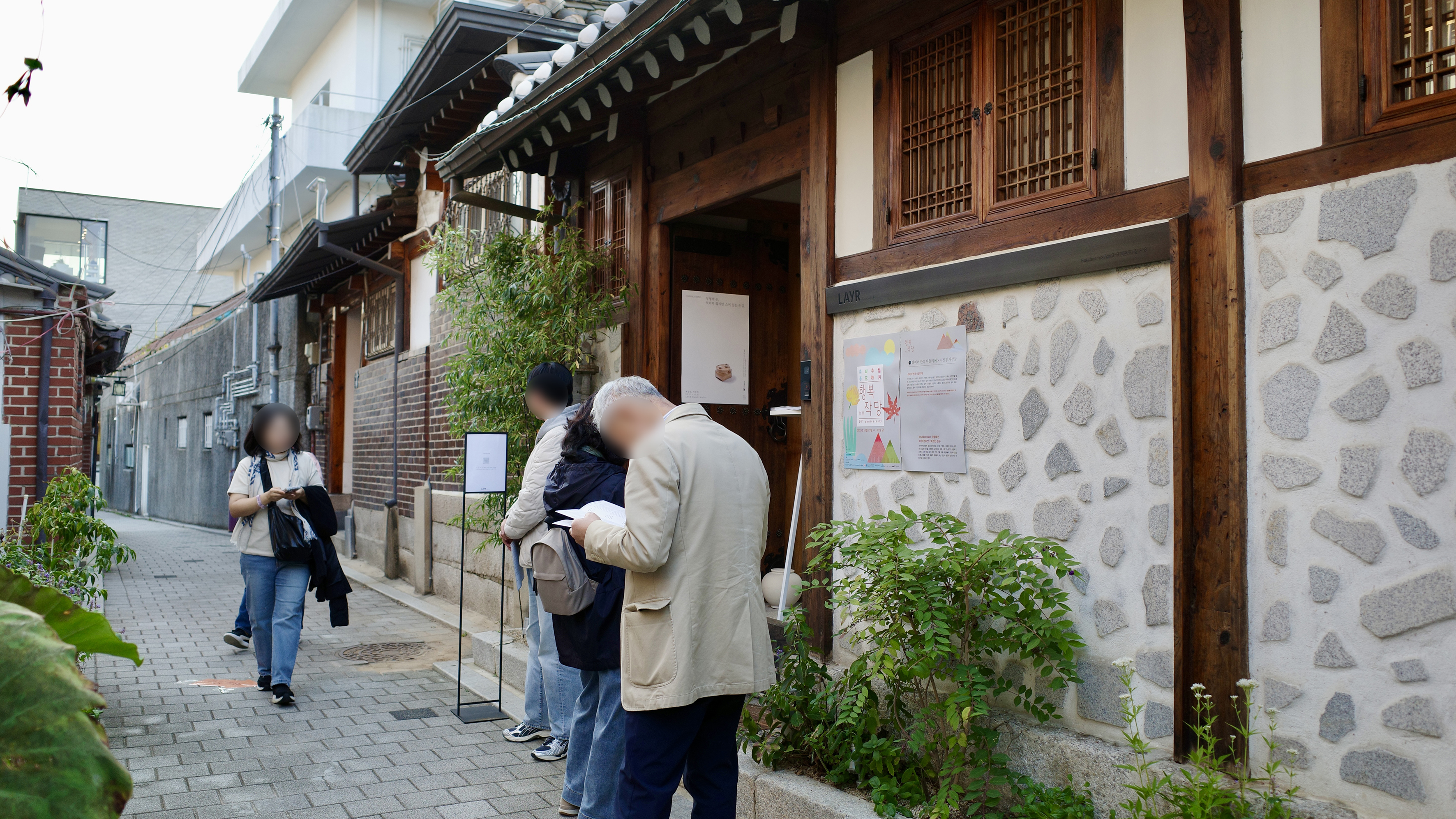 한옥 사이를 거닐며 전시를 기다리는 사람들 / 사진: ⓒSOSIC