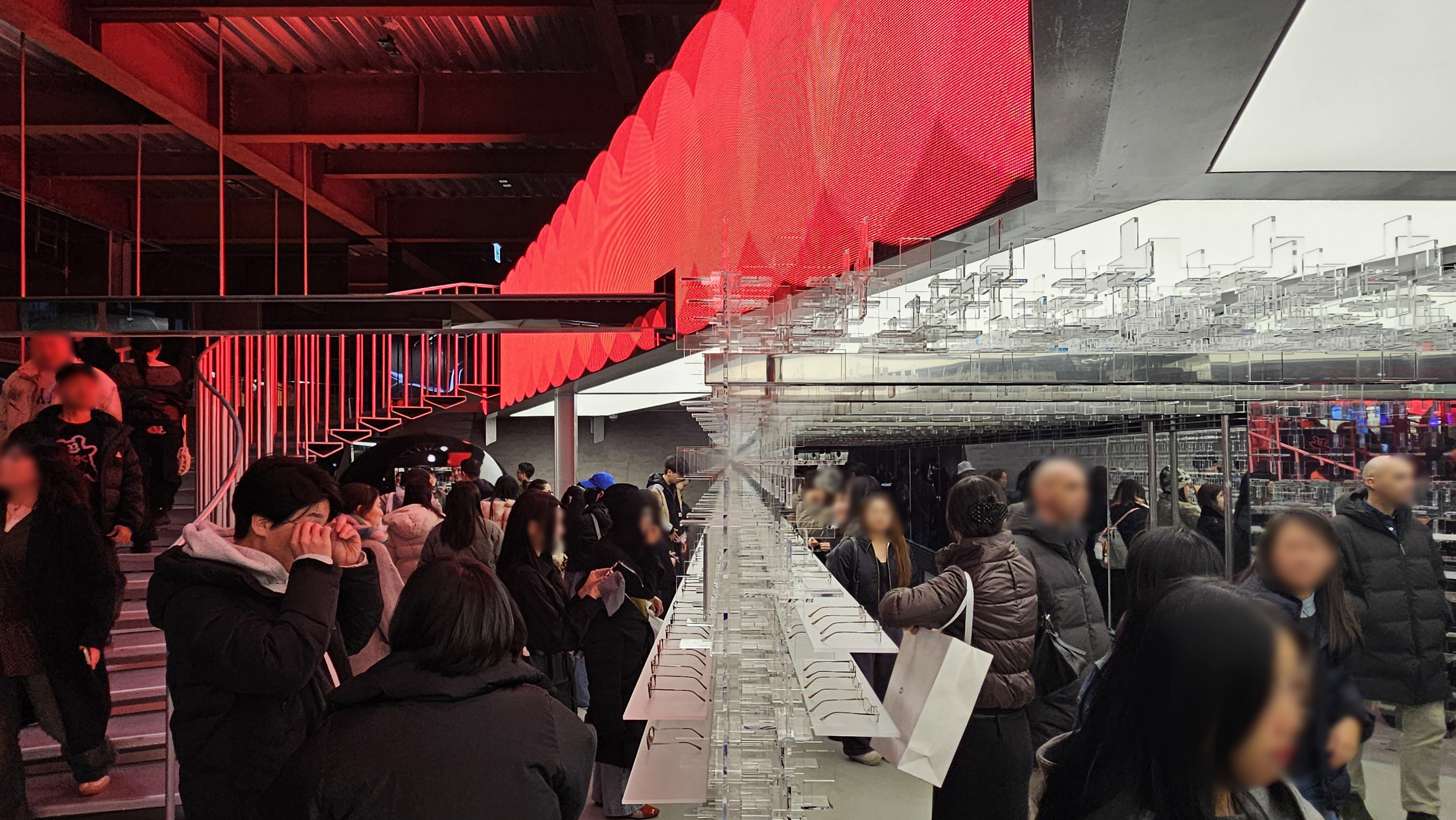12m 스피어 앞에서 찍힌 수만 장의 인증샷이 SNS로 퍼져나가는 순간, 이 공간은 수십억 원의 가치를 지닌 광고 매체로 변신할 수도 있습니다. 1000평의 임대료는 단순한 ‘공간 사용료’가 아니라, 실은 전 세계 잠재 고객에게 도달하는 '마케팅 집행비'로 회계처리되어야 마땅하다고도 볼 수 있죠. 즉, 현장에서 안경이 덜 팔리더라도, 이 공간이 만들어낸 브랜드 팬덤이 온라인 자사몰의 매출을 견인하는 구조(O4O, Online for Offline)가 확립되어 있다면, 이 거대한 공간은 충분히 지속 가능합니다.