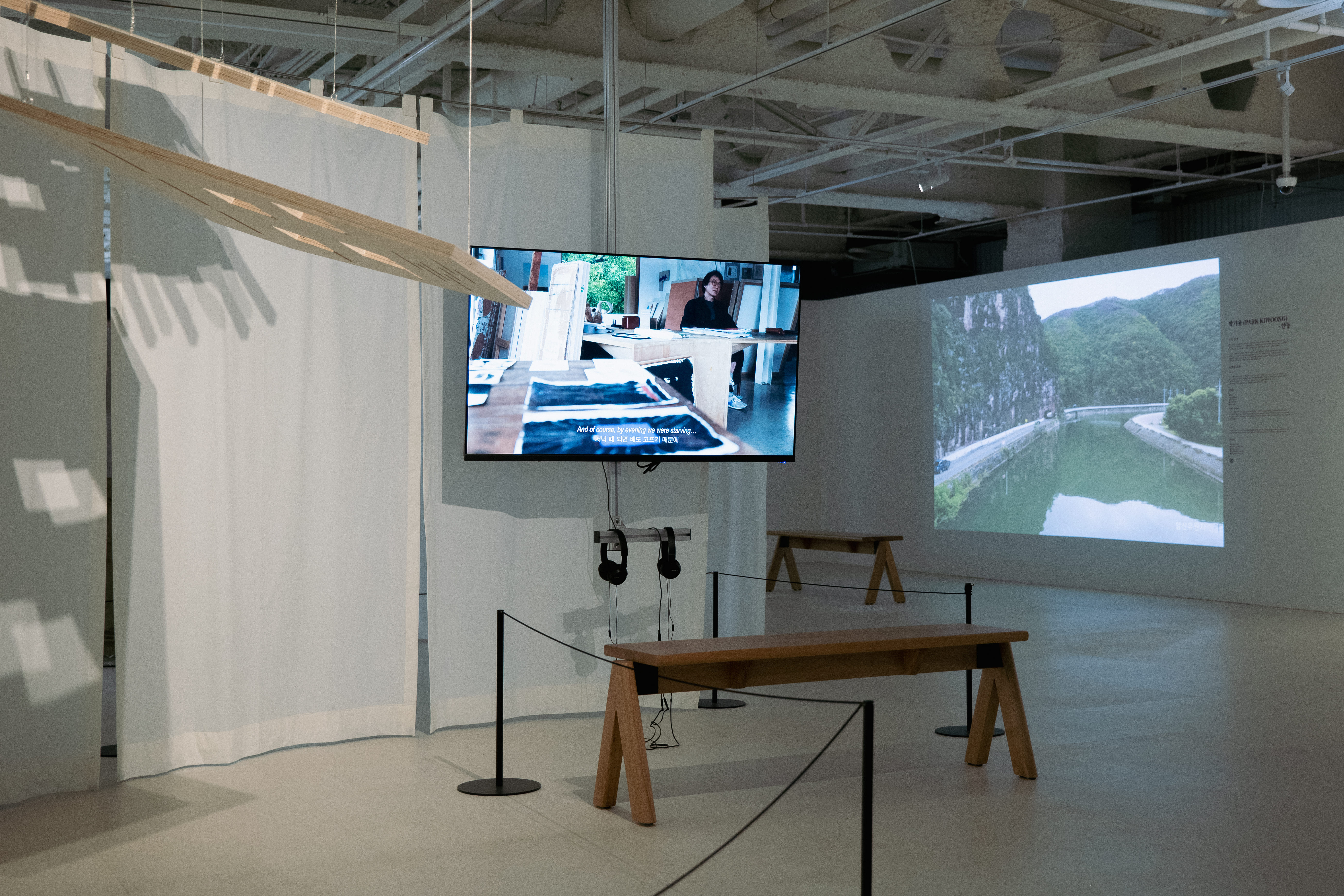 전시장 내부도 마찬가지로 로컬에 대한 설명을 지도나 연표, 정보 패널보다 인터뷰를 담은 영상과 빛, 작가들이 표현하고 싶은 작품과 오브제들로 표현합니다. 관람객에게 특정 지역에 대한 지식을 ‘학습’시키기보다, 그 공간에 깃든 감정을 동기화시키는 장치로서 기능하죠.