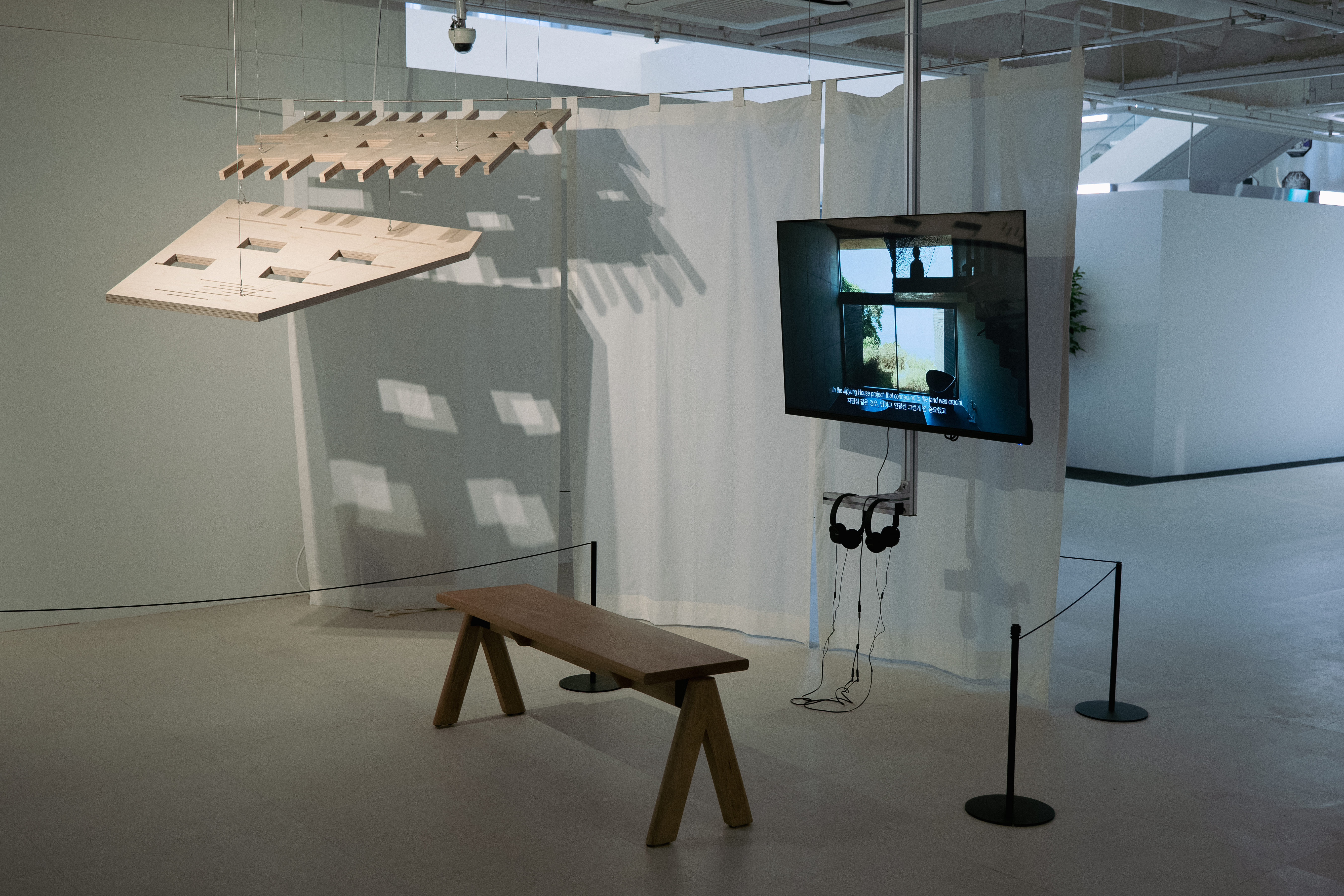 특히 주목할 부분은 ‘앉음’을 중심에 둔 공간 구성입니다. 문승지 작가의 의자를 중간중간 배치한 것은 관람객의 동선을 의도적으로 지연시키고, 수직적으로 서서바라보기 보다 수평적인 시선으로 작품을 감상하고 바라보게 합니다. 여기서 중요한 것은 낮아진 시선이 만드는 태도의 변화와 관점인데요. 우리가 미술관에서 서서 관람할 때는 정보를 빠르게 스캔하고 파악하려는 상태를 유지하지만, 의자에 몸을 맡기고 시선을 낮추는 순간 공간과 관람객 사이의 위계는 사라집니다.