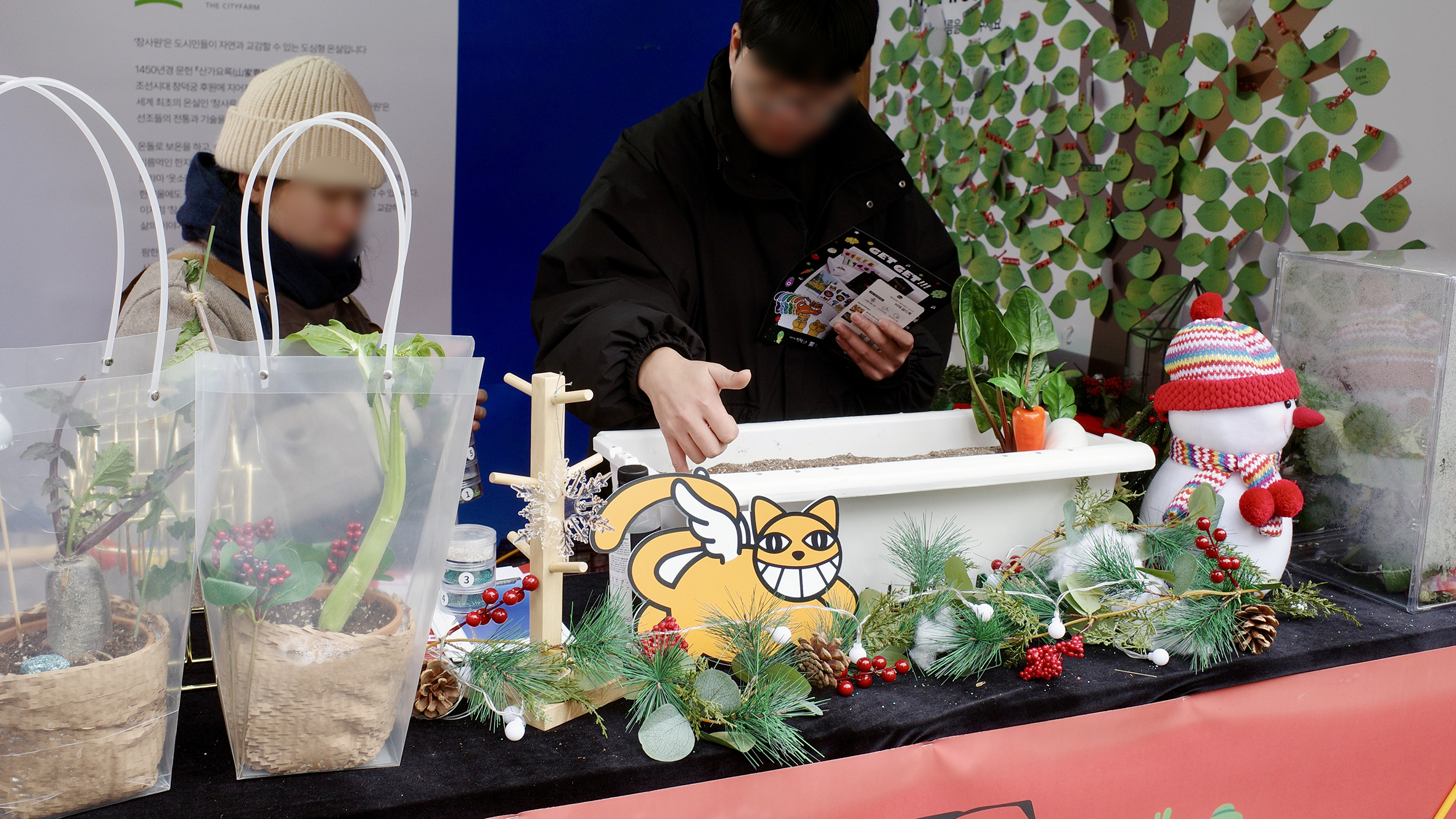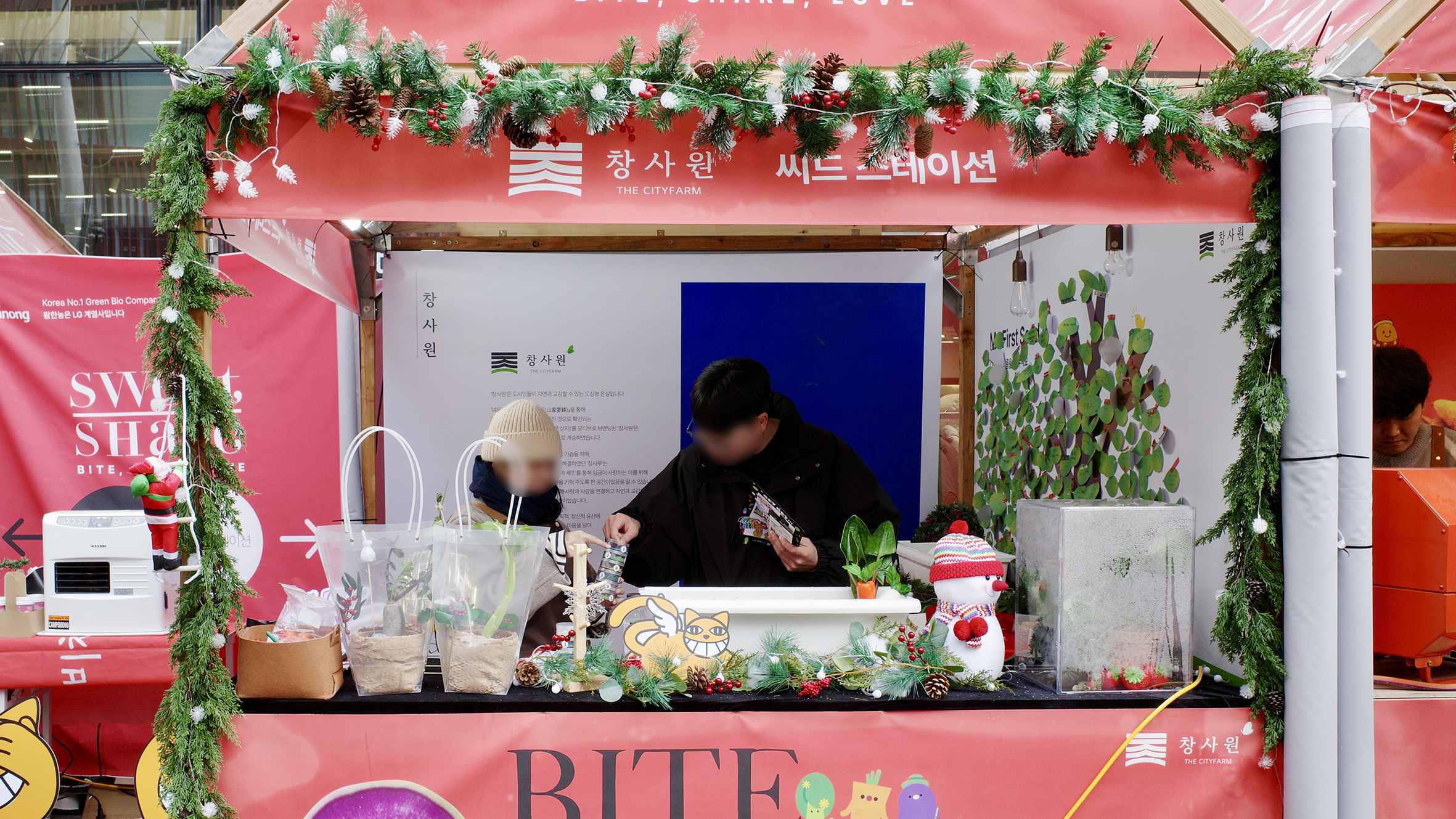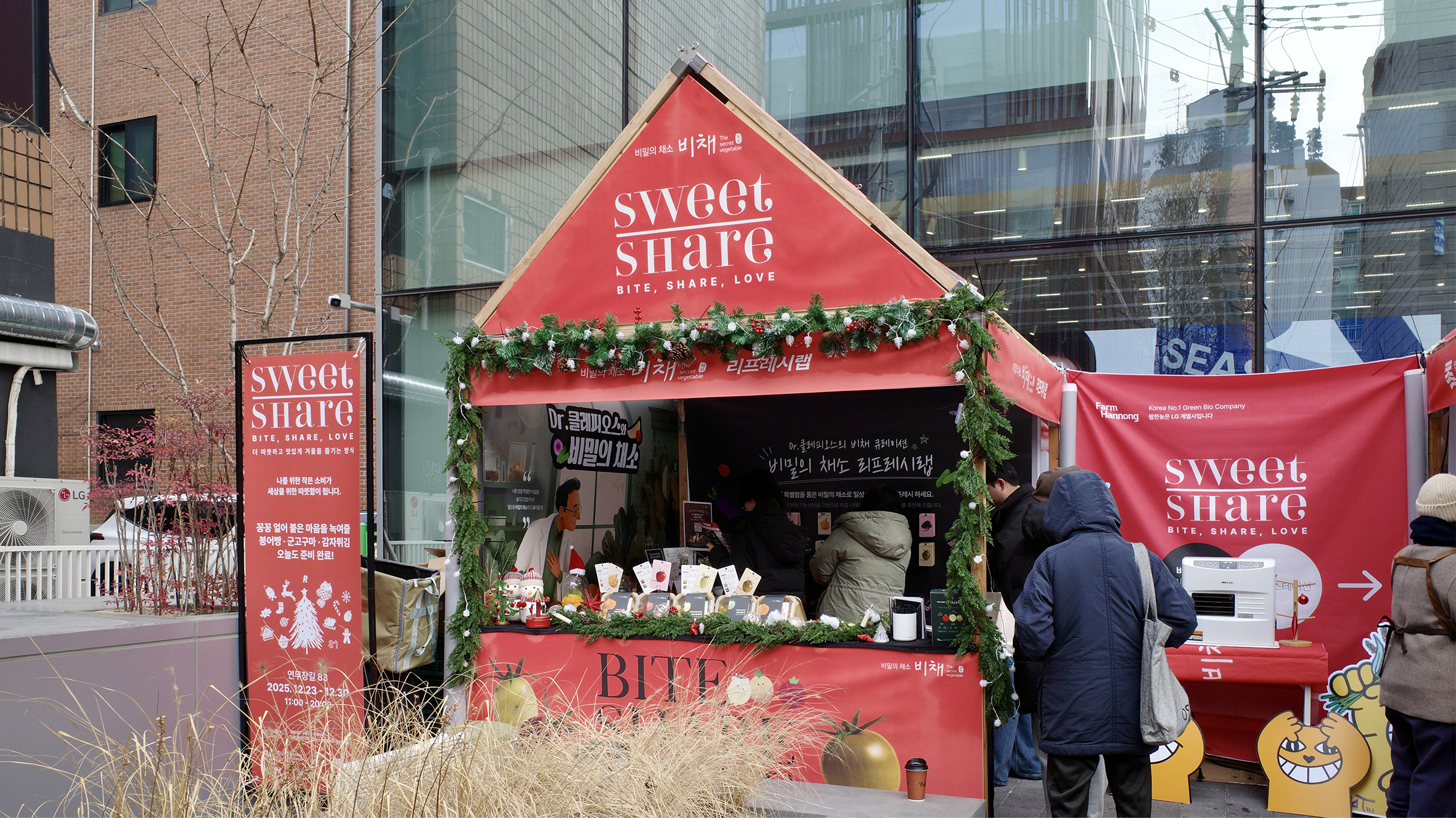 참여자는 가볍게 리프레시 하고, 씨앗 하나 심어보고 붕어빵, 군고구마와 같은 겨울 간식을 고르고 소액을 지불하는 일상적인 소비 과정을 거칩니다. 이때 소비는 그 자체로 끝나지 않고, 곧바로 기부로 전환되는 구조를 형성합니다. 즉, 참여자는 기존 구세군 냄비에 금액을 넣으며 '기부를 한다'는 별도의 행위를 수행하기보다, 연말의 거리에서 흔히 반복되는 소비 경험을 통해 자연스럽게 나눔에 참여하게 되는 것이죠. 또한 이번 캠페인에는 LG 팜한농 신사업팀 소속 ‘창사원’, 비채 등 다양한 브랜드가 참여하지만, 브랜드는 메시지를 주도하지 않습니다.